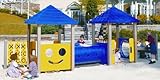 This outdoor structure reinforces our belief that the outdoor classroom should be as rich as the indoor environment. Things to see, materials to manipulate, and places for the imagination to grow are just a few of the experiences toddlers will have that promote physical and mental growth. The Ground Base Structure features twin peak roofs to protect from the sun, extra-long crawl tube with see-through portholes for maximum supervision, Group Art Panel with cup holders on each side, smiley face panel that encourages the use of hand puppets, tic-tac-toe panel, two steering wheel panels, and bubble panel. Easy to assemble and install. Meets CPS guidelines. Environmentally sound - upright post, step and platform borders are made from a patented process using recycled plastics. Meets or exceeds requirements for access under the Federal Access Board's Accessibility Guidelines for Play Areas. Lifetime warranty on recycled posts. 15 year warranty on metal decks and steps. 10 year warranty on plastic components. 18'6" L x 4' W. Use Zone: 10'6" L x 16' W. Surface Mount over rubber tiles or poured-in-place surfacing with Surface Mount Anchors.